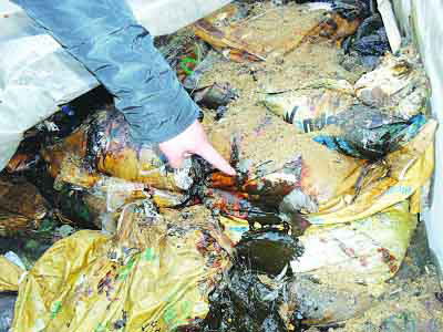 丹徒区固体废弃物管理中心主任王曙透露,据许某交代,被查获的工业废弃物来自浙江台州一家化学有限公司,是生产504胶水的下脚料。从去年11月起,向镇江非法转移,至今约六七次,每次约20吨。他从厂家以120元/吨购来,以300元/吨卖给丹徒曲阳龙泉、洋湖塘北和丹阳延陵等地浴室作燃料。